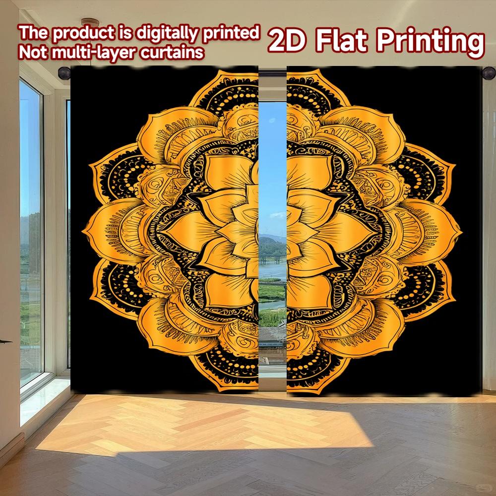 2D FLAT PRINTING 2pcs Curtains (Without Rod) Golden Mandala Design Valentine is day Festival Fashion Curtains Durable Polyester