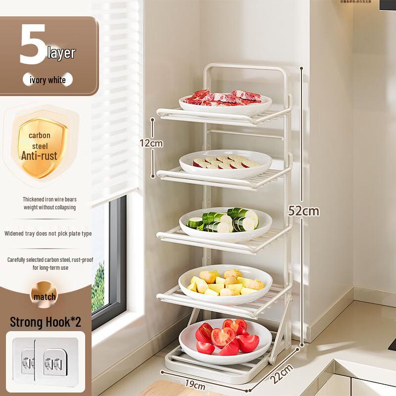 Organize your kitchen with this stylish and functional Nordic-inspired storage rack. Crafted from durable carbon steel with an anodized finish, it features a convenient foldable design for easy storage when not in use. Perfect for countertop prep or general organization, its no-drilling setup ensures effortless installation.