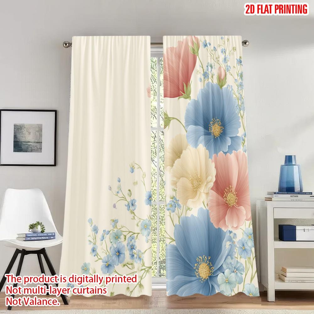 2pcs 2D flat printing Merry Christmas Party Curtains Cosmos Flowers Watercolor Digital Printed Polyester Drapes Birthday Party