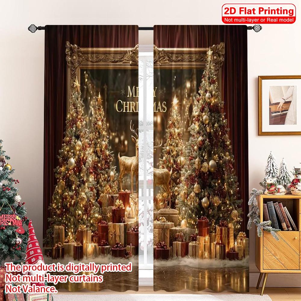 2pcs 2D flat printing Christmas Window Curtains merry christmas11 100% Polyester Without Electricity Spring Perfect for Festive