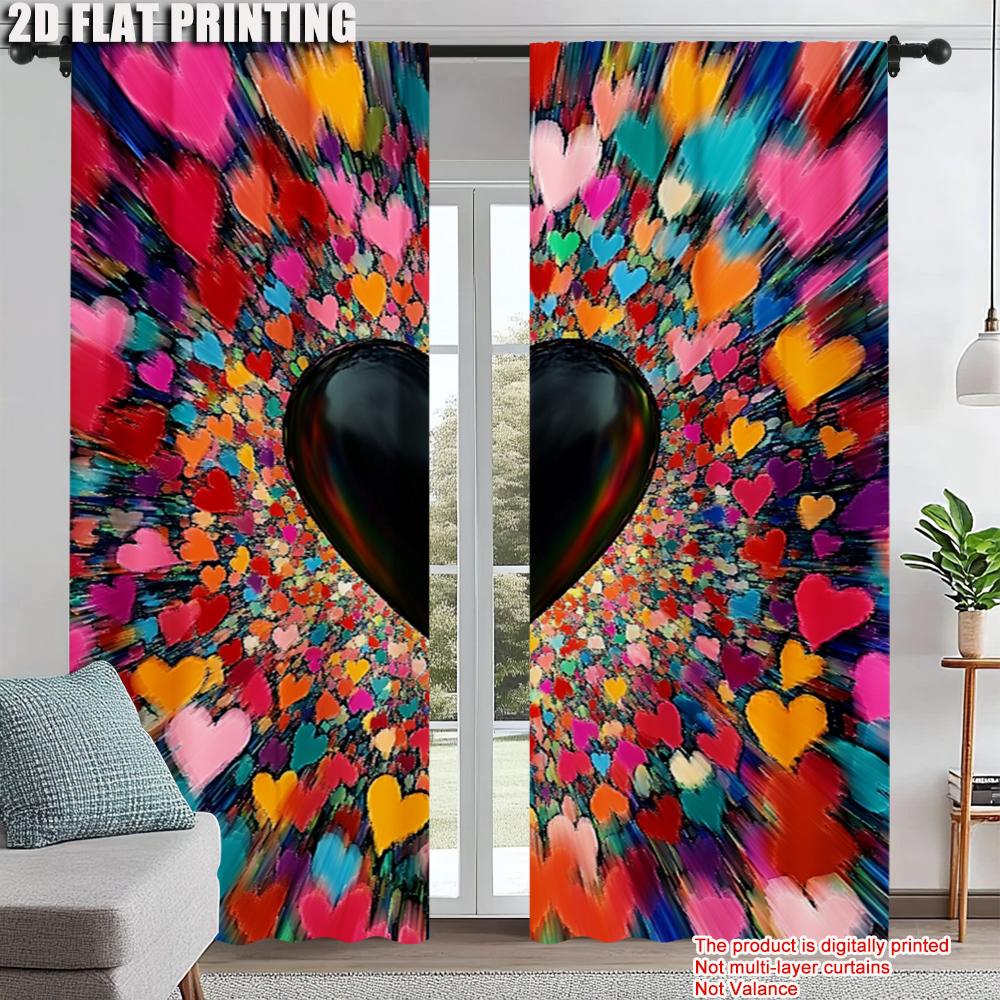 2pc Scene Curtains Vintage Style Valentine's Day Machine Washable Polyester Without Electricity Wall Decor Suitable for Indoor