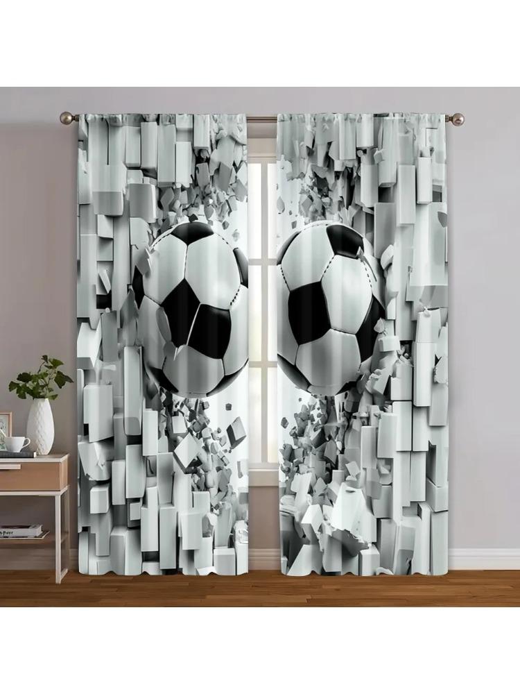 2pcs Print Curtains print Football Printed Versatile Durable Polyester (without rod) Art Deco Festive Perfect for Room