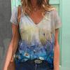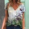 New Oil Painting Flower Floral 3D Print T-Shirts Women Streetwear V-Neck T Shirt Oversized Harajuku Y2k Tops Tees Woman Clothing