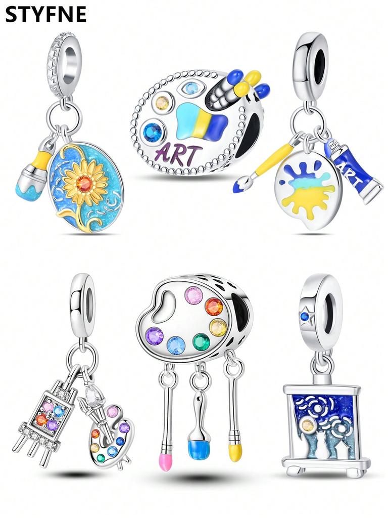 Charms Plata Art Festival Painting Boardbeads Charm Copper Plated Fit Charms Original Bracelet For Jewelry Making Diy Charm