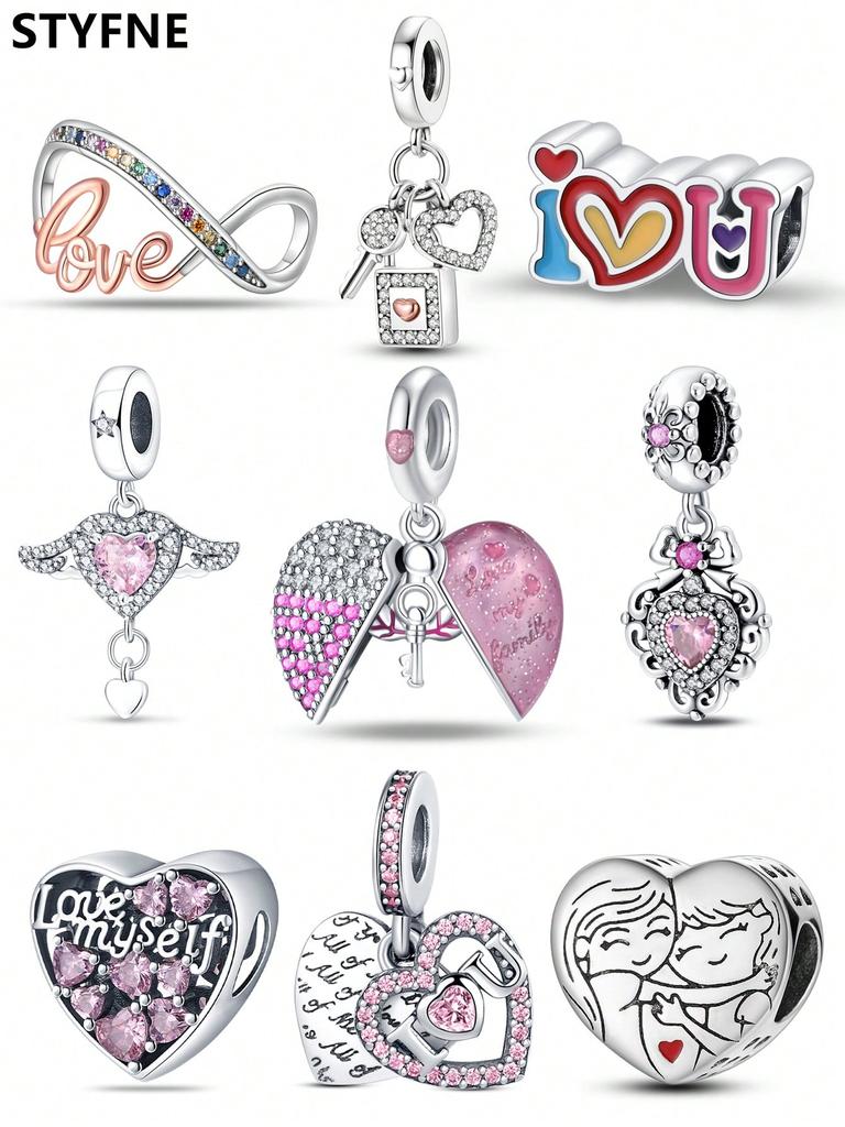 Charms Plata Sweet Diamond Heart Beads Charm Copper Plated Fit Charms Copperoriginal Bracelet For Jewelry Making Diy Charm