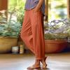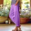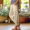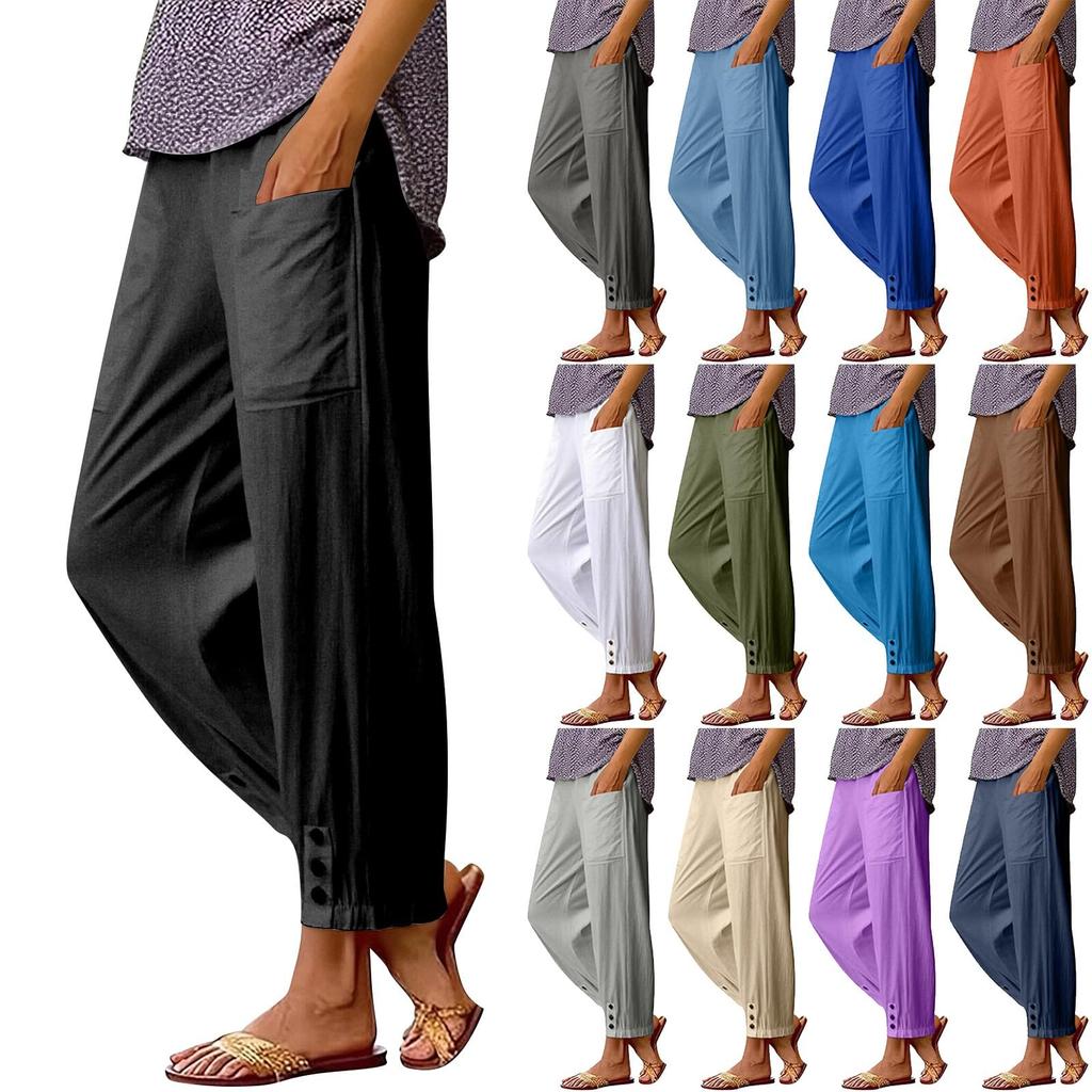 Women's Fashion Color Loose High Waist Button Pocket Cotton And Hemp Pants Nine Point Casual Pants