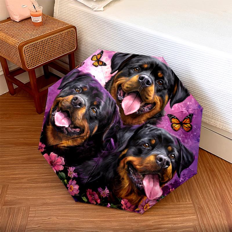 1 PC Automatic Folding Umbrella - Rottweiler Dogs Pattern, Portable & Foldable Design with 8 Ribs, Christmas Birthday Gifts