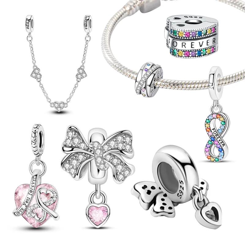 Copper Heart-Shape Forever Love Charms Colorful Zircon Beads Pendant Fit Original Bracelet Diy Fine Jewelry Gifts For Women