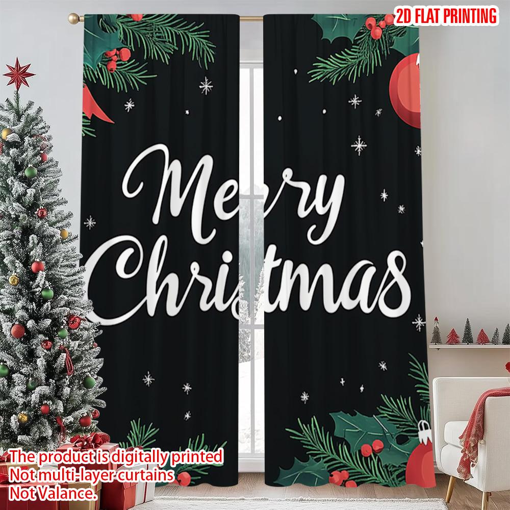 2pcs 2D flat printing Merry Christmas Popular Curtain Merry Christmas leaves Versatile 100% Polyester Without Electricity Family