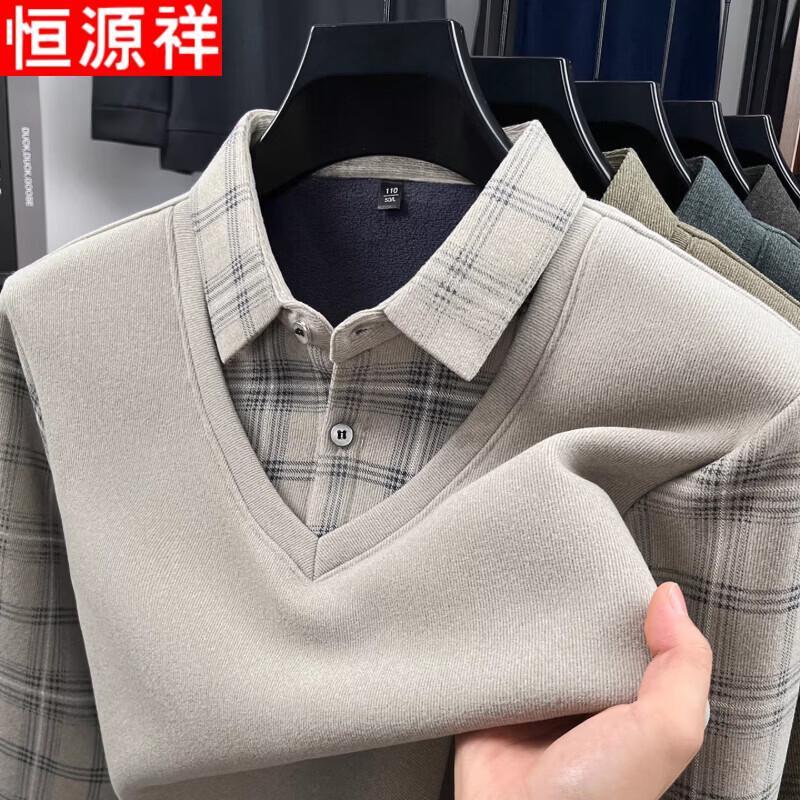This Hengyuanxiang men's thermal long-sleeve shirt features a faux two-piece design with a casual shirt collar, blending wool for warmth and comfort. Its fleece lining makes it ideal for winter, offering a stylish and cozy option for daily wear, especially for middle-aged men.