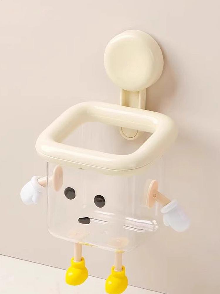 Cute robot suction cup storage box wall mounted sink cosmetic storage box Cute Suction Cup Organizer for Toothbrush Cosmetic