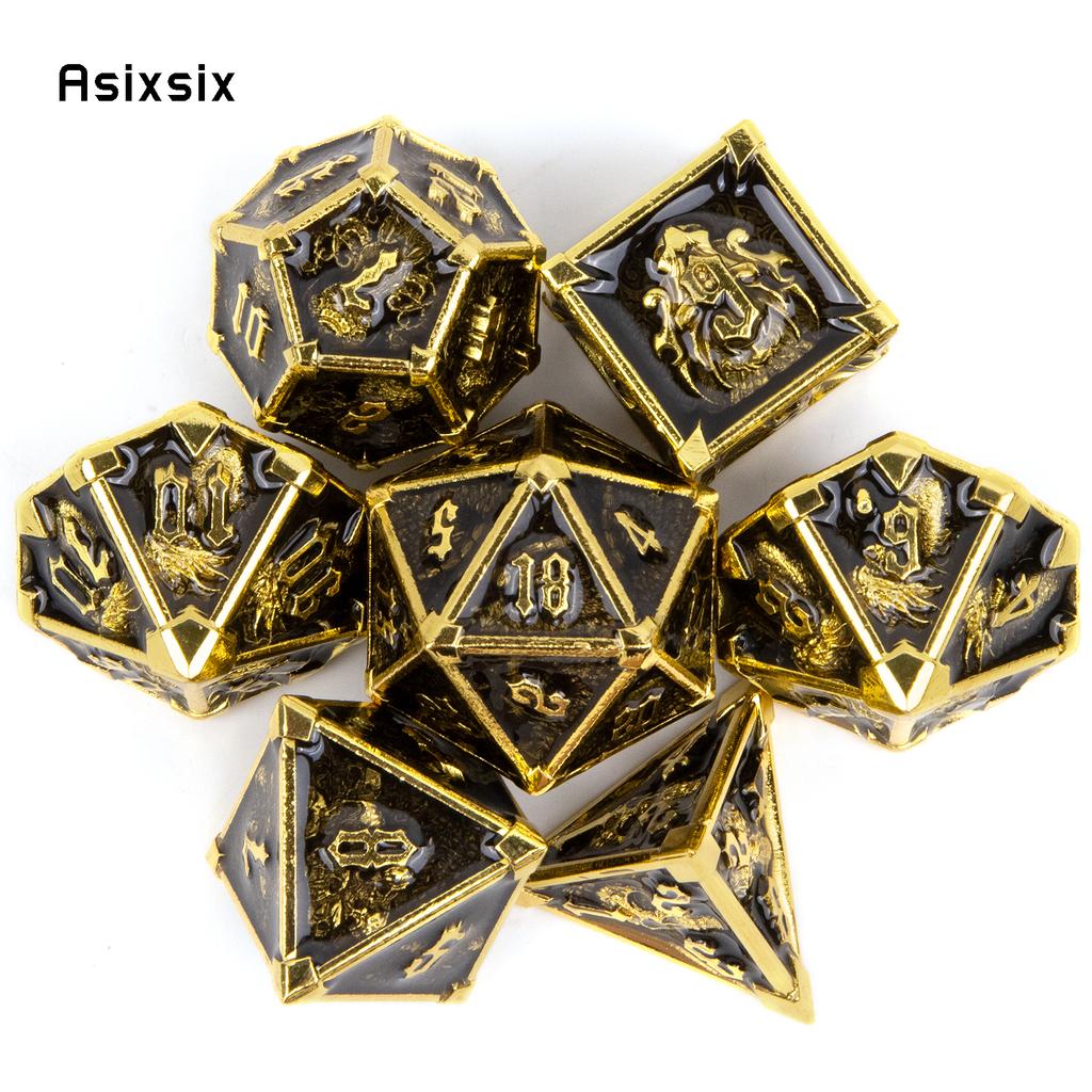 7 Pcs Black Golden Skull Metal Dice Solid Metal Polyhedral Dice Set Suitable for Role-Playing RPG Board Game Card Game