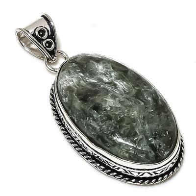 תליון אבן חן קוורץ סולארי ירוק טבעי כסף סטרלינג 925 1.89" Z7z47