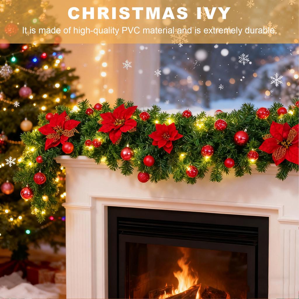 2.7M Christmas Decoration Rattan Christmas Garland Wreath for Mantel Stairs Home Indoor Outdoor Decor