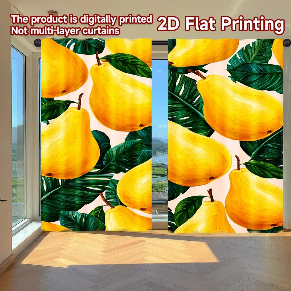 2D FLAT PRINTING 2pcs Curtains (Without Rod) Fresh Pears and Green Leaves New year Festival Fashion Curtains Machine Washable