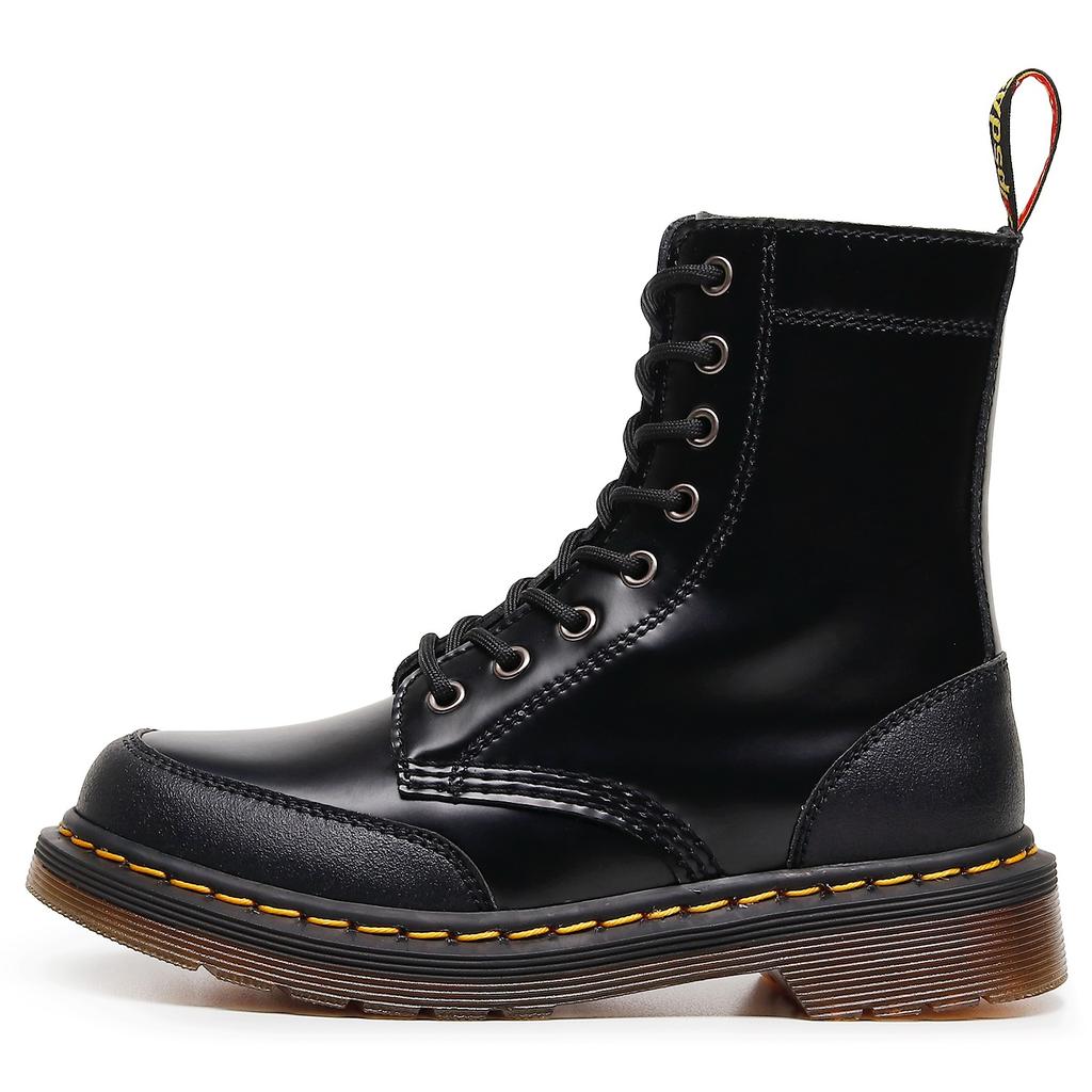 High-top 1460 Tooling Boots Women's Splicing Hard Leather Open-edged Bead Short Boots Men's and Women's Glossy Leather Boots Round-head Locomotive Sho