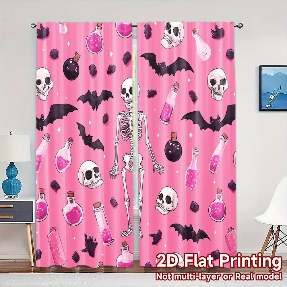 2D Flat Printing JIT 2pcs Curtains (Without Rod) Halloween Whimsy Modern Curtains&Drapes Durable Polyester Curtains Art Deco