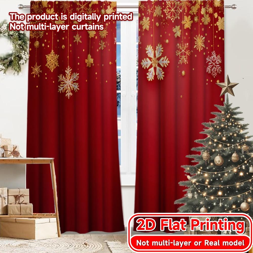 2D Flat Printing 2pcs Holiday Cheer Modern Curtain Fabric Versatile Polyester Curtains Holiday for Translucent digital printing