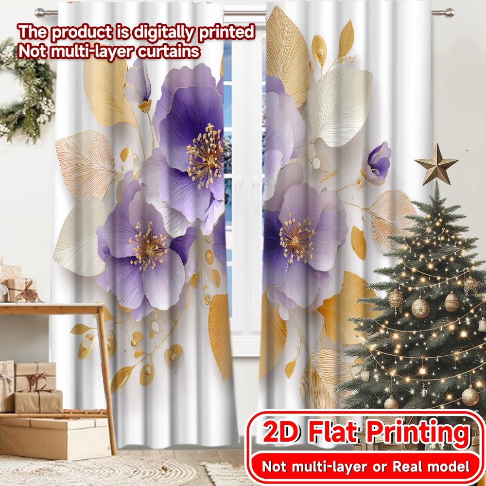 2D Flat Printing 2pcs Elegant Blooms Chic Curtain Cloth Durable Polyester Curtains Festive for Semi-Transparent Living Room