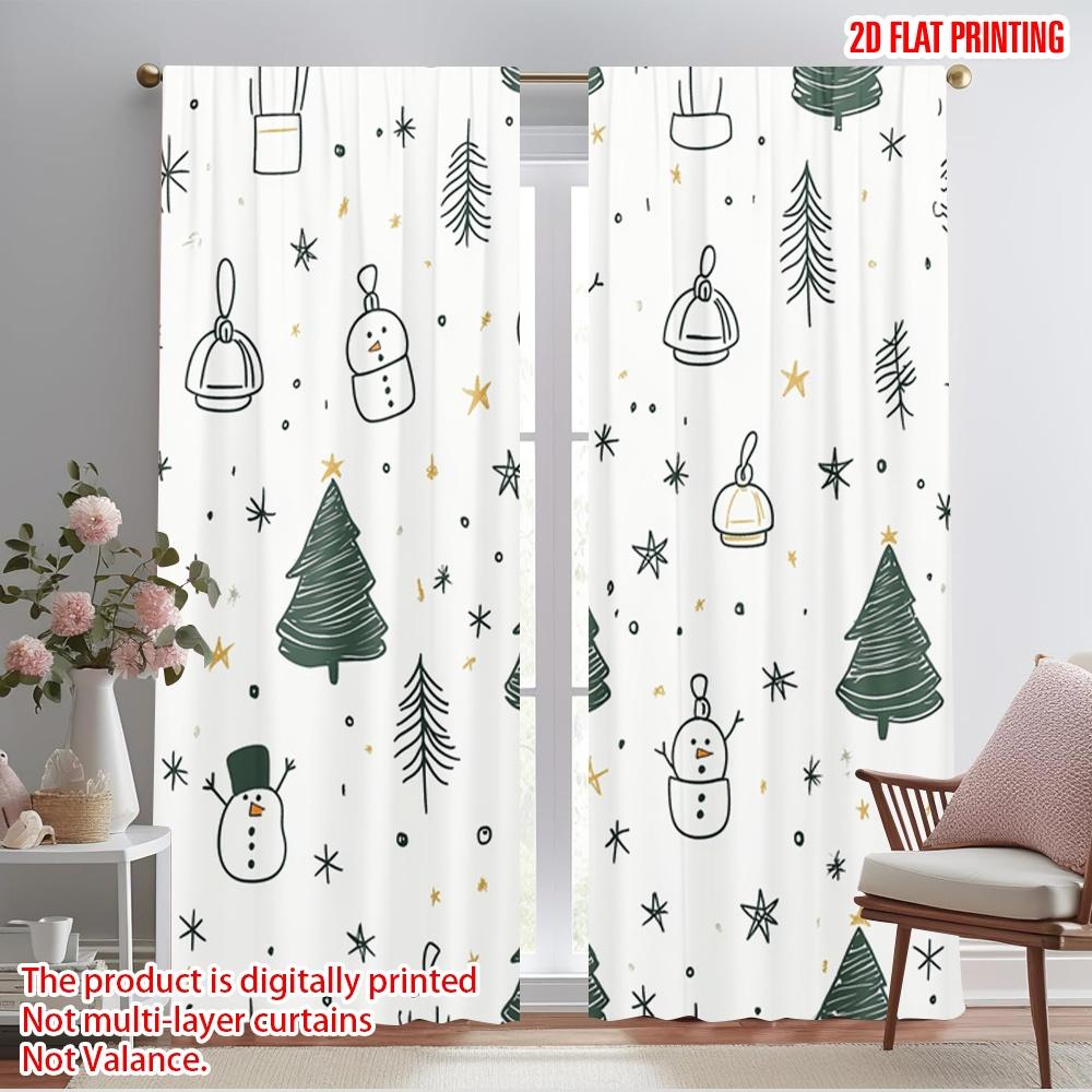 2pcs 2D plane printing Print Curtains Cute Christmas Snowman Tree Gift (3) Polyester Easy Install (without rod) Room Decor
