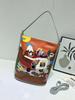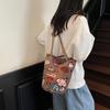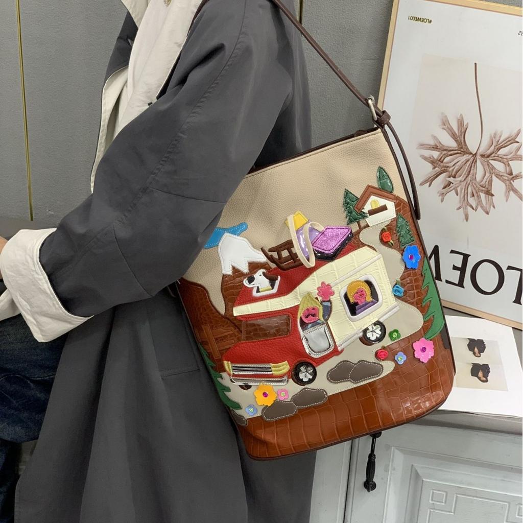 Simple Texture Literary Bucket Bag Women'S 2026 Splicing Embroidery Bag Casual Personality Shoulder Messenger Bag