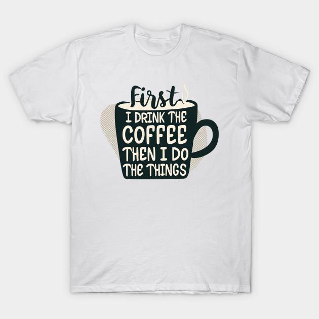Men Black Print T-shirt First I Drink The Coffee, Then I Do The Things - Cup Of Coffee No-Cut Transfer Paper Print Cotton Tshirt