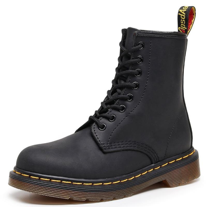 High-top Crazy Horse Black Motorcycle Boots Women's Classic Retro Short Boots Men's and Women's Boots Round Head Trend