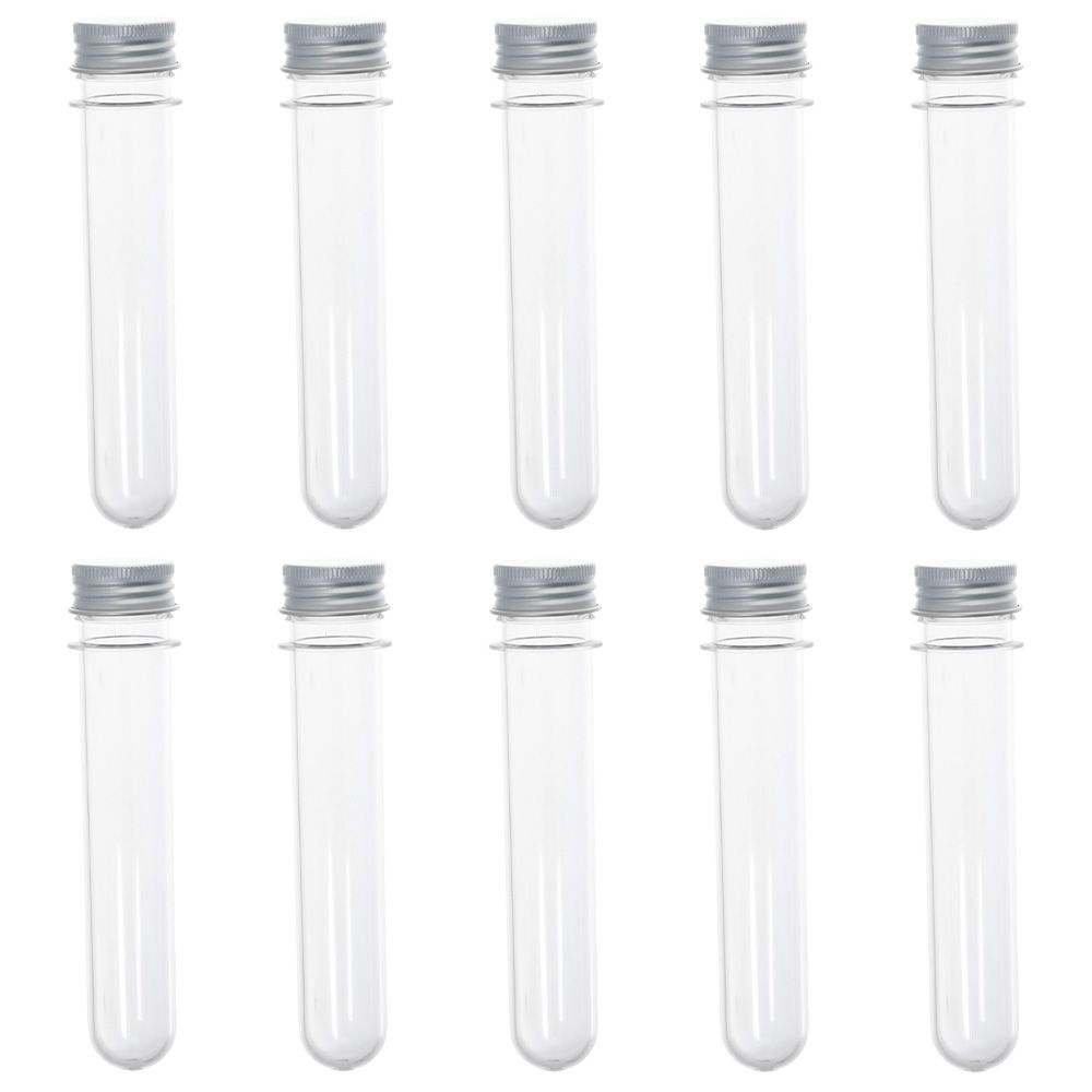 10pcs Plastic Test Tube Transparent 45ml Science Tubes with Aluminum Cover 25×140mm Burette Scientific Experiments