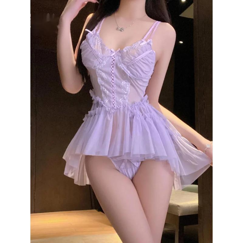 Sexy Lingerie Pure Desire Style Nightdress See-through Hot Uniform Lace Strap Nightdress Dress Elegant Fashion Women Top PJR8