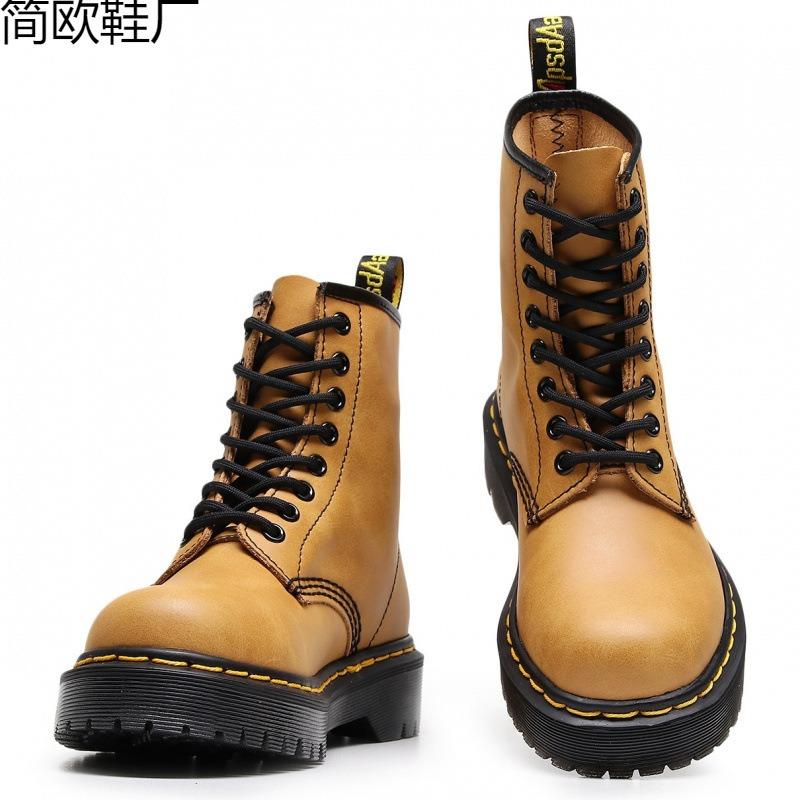 Martin boots high-top tooling boots women's medium platform Crazy Horse brown short boots men's and women's leather boots round