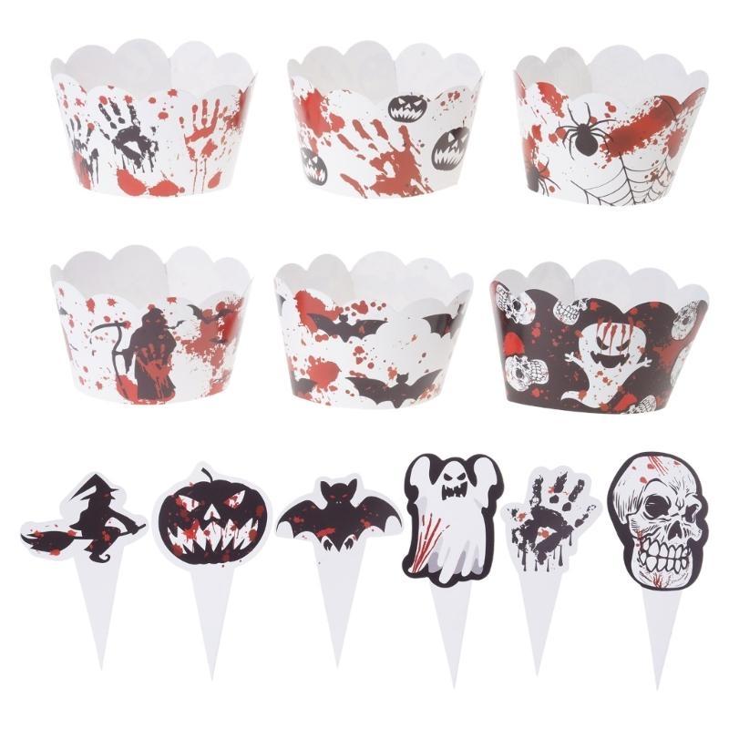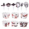 652F Halloween Theme Small Cupcake Toppers Cupcake Wraps Party Decorations Mini Pumpkins Skull Bat Cupcake Decoration