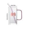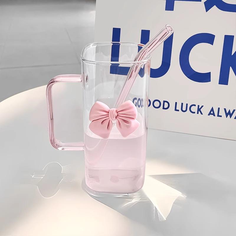 Lovely Delicate Bownot Glass Cup with Straws and Lids, Lemon Tea Cup, Milk Cup For Home, Office, Dining Room
