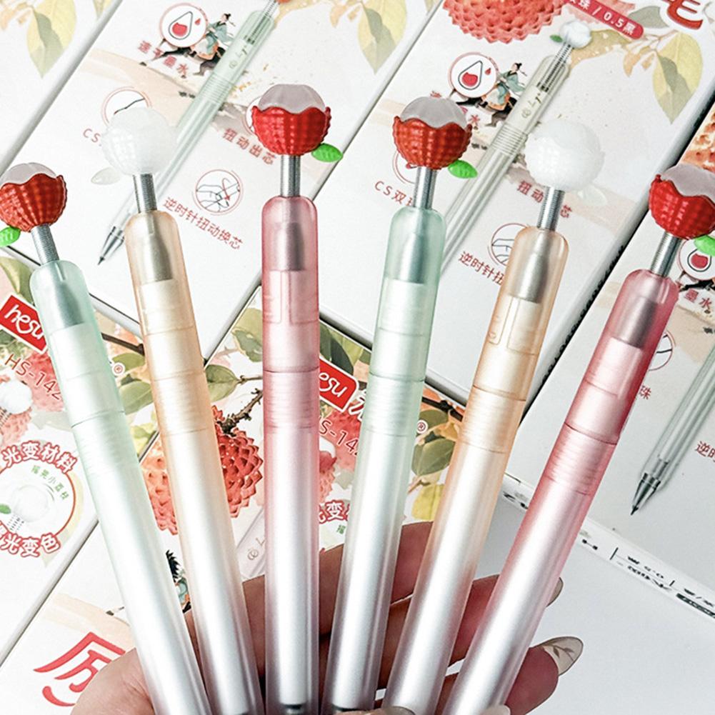 0.5mm Cute Fruit Gel Pens Black Ink Ballpoint Pen Retractable Stationery Supplies Fine Point Quick-Dry Ink Writing Tool
