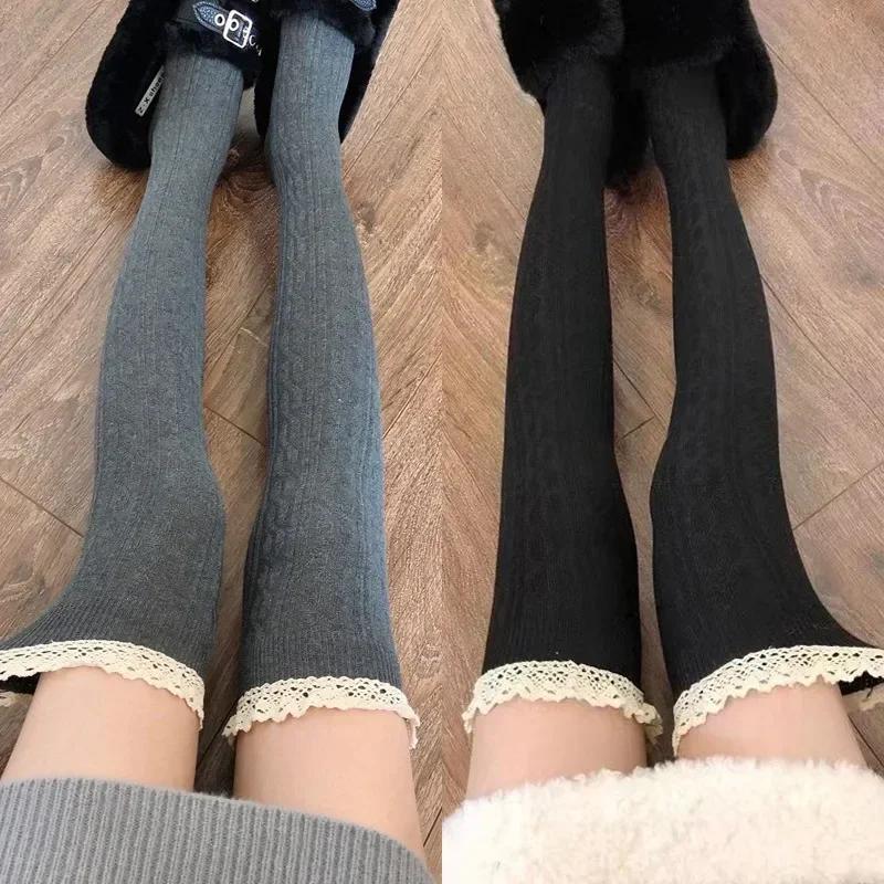 Sexy Lace Up Knee Socks Japanese Retro Women Stockings Lace Long Girls Lolita JK Style Sweet Fashion Thigh High Sockings