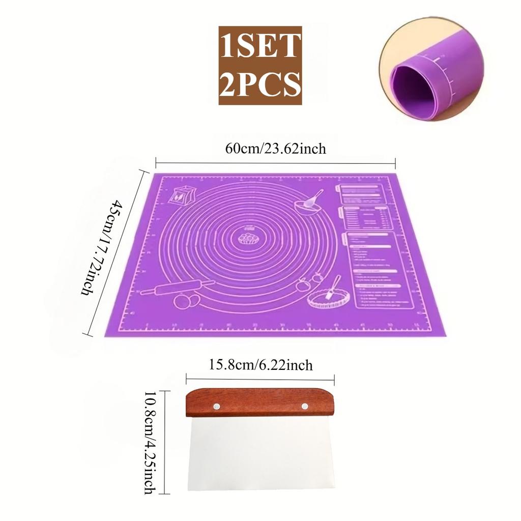 45x60CM Kneading Mat with Stainless Steel Dough Cutter Scale Measurements Desigh Non Stick Pastry Fondant Mat for Baking Kitchen