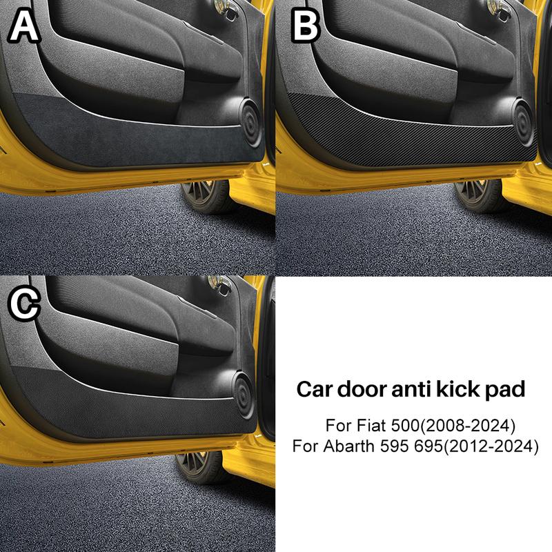 Suede Door Anti-kick Pad For Fiat 500 2008-2024 Abarth 595 695 2012- 2024 Car Leather Carbon Mat Interior Trim Accessories