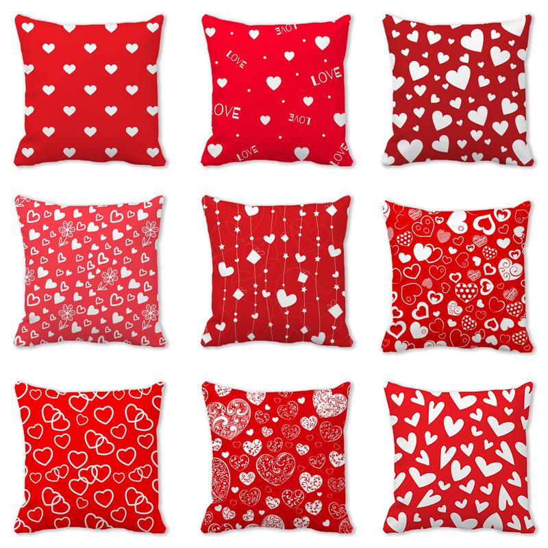 Home Decor Red Heart Patterns: Love themed Pillow Covers Pattern Cushion Cover Suitable for Sofa Bedroom Car Pillow Cover