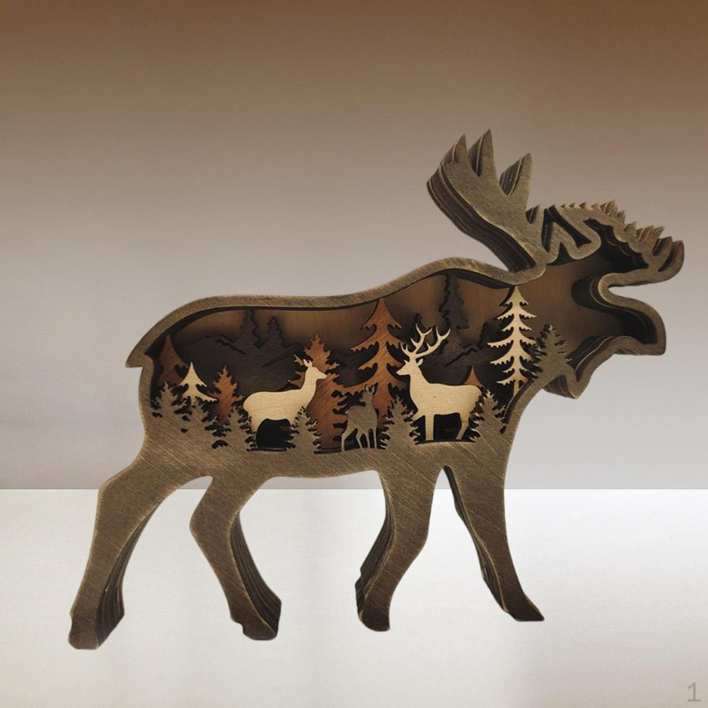 - Nordic wooden elk and brown bear freestanding home decoration.