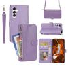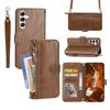 For Samsung Galaxy S26 Case Zipper Pocket Leather Phone Cover with Crossbody Shoulder Strap