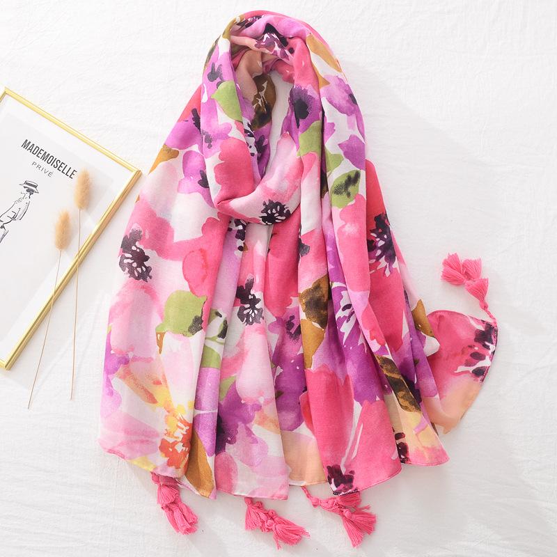 Women Autumn Winter Viscose Shawl Abstract Painting Floral Pashmina Stole Wrap Thick Echarpe Foulard Femme Muslim Hijab 180*90Cm