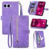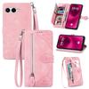 For T-Mobile REVVL 8 Zipper Wallet Case with Strap Flower Imprint PU Leather Phone Cover