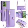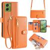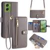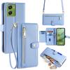For Motorola Moto G06 4G Leather Case Zipper Pocket Wallet Phone Cover with 2 Straps