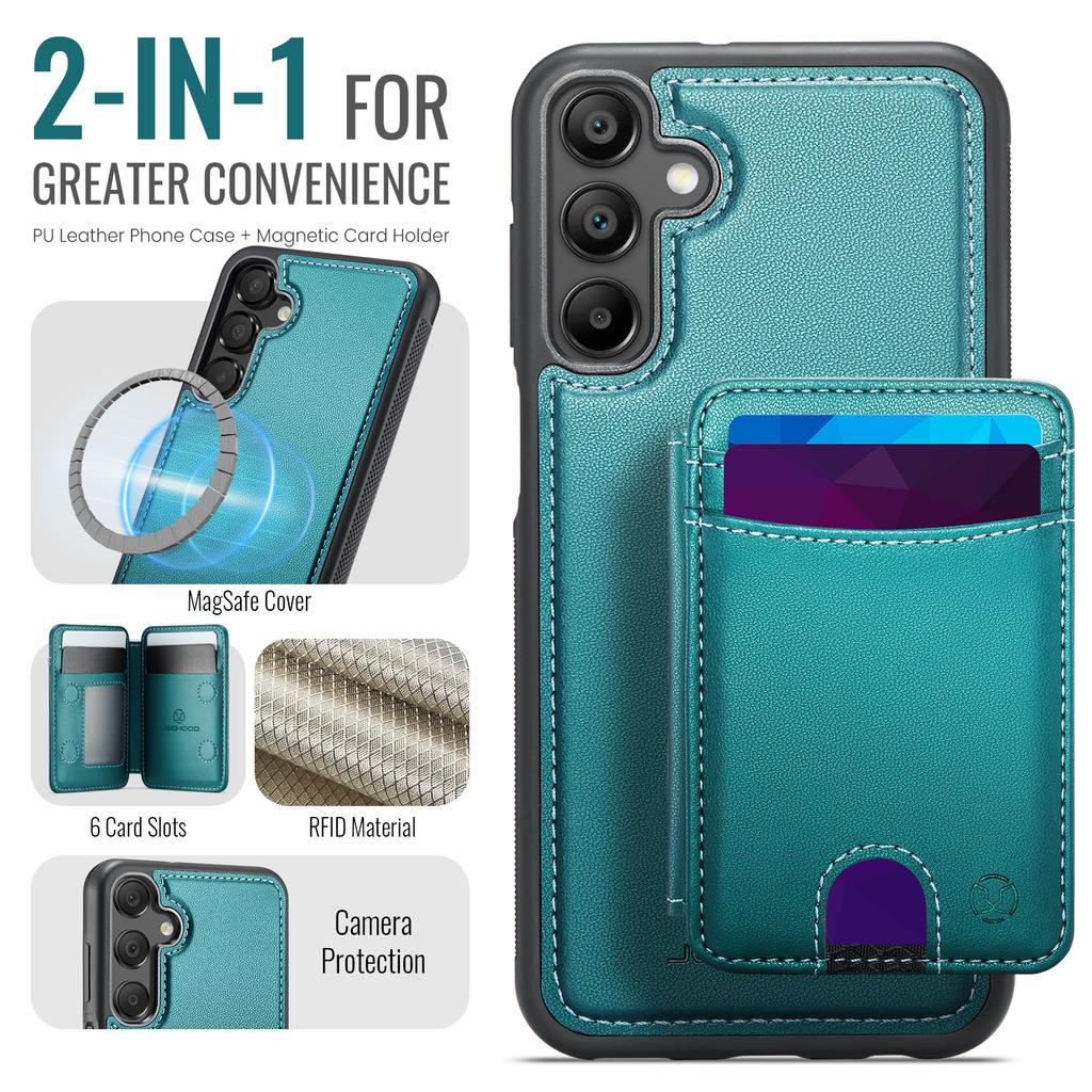 For Samsung Galaxy A17 5G/Galaxy A17 4G Magnetic Case JEEHOOD J10 Leather Back Phone Cover with Detachable Card Holder Kickstand