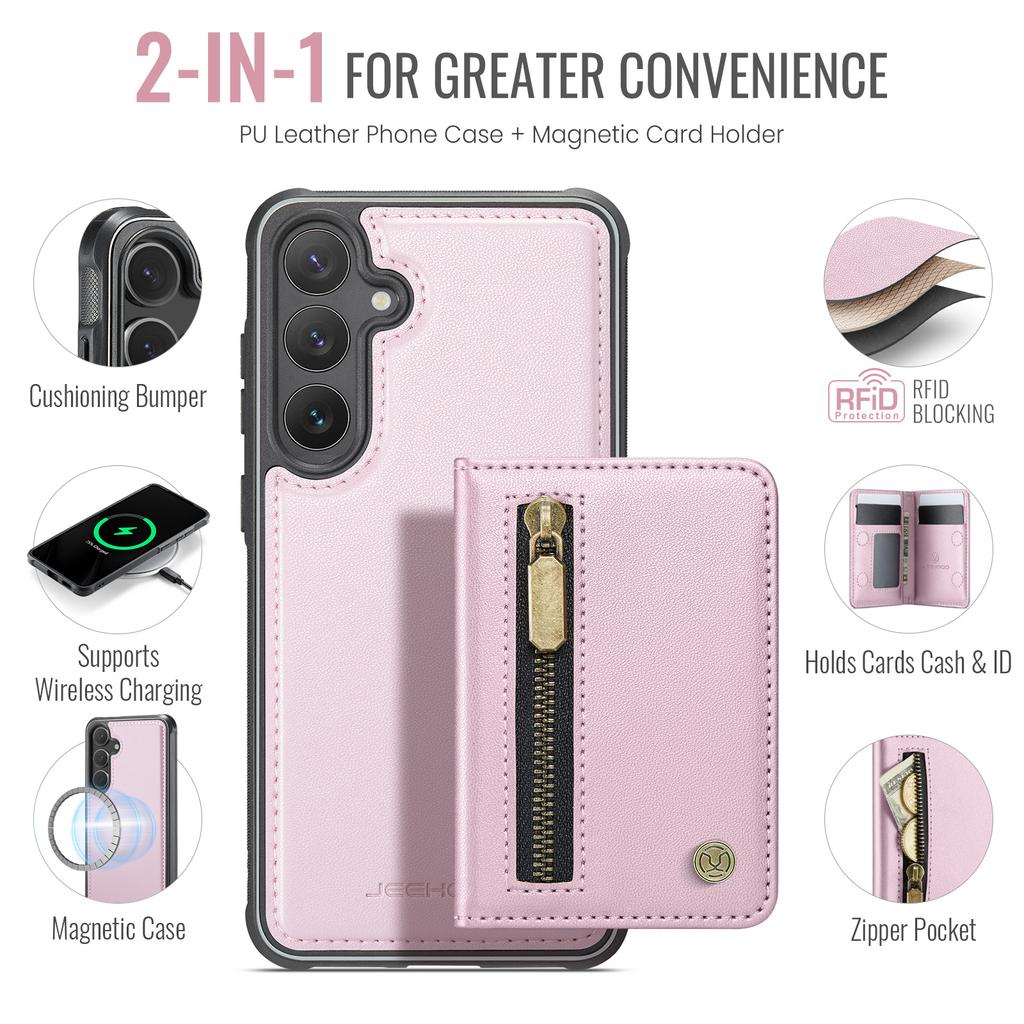 For Samsung Galaxy S26 Case JEEHOOD J12 Magnetic Detachable Zipper Wallet Kickstand Leather Back Cover Compatible with MagSafe