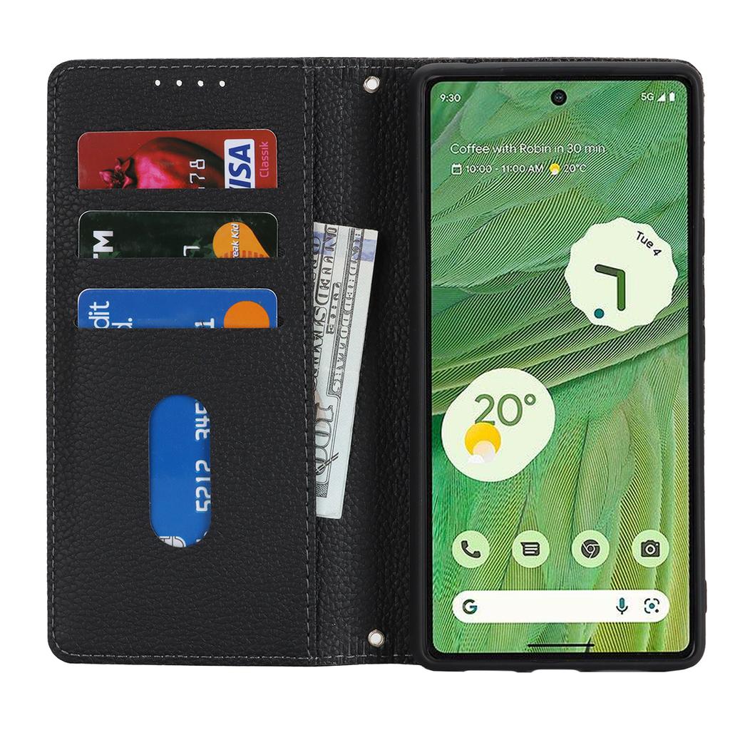 For Google Pixel 7 5G Case Stand Wallet Litchi Texture Leather Flip Phone Cover with Strap