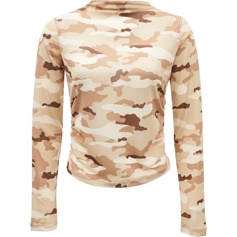 ONLY Women's 2024 Spring Semi-Sheer Camouflage Mock Neck Long Sleeve Tee