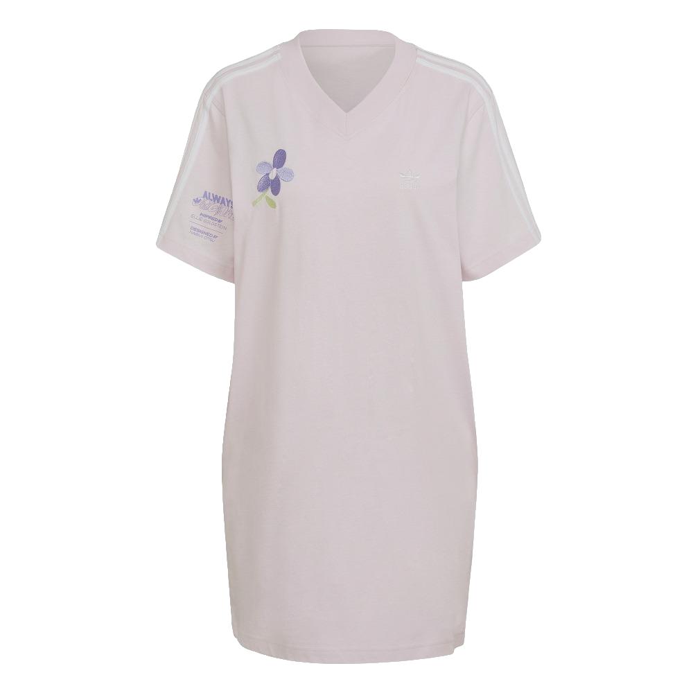 Adidas Trefoil Solid Color Logo Embroidered V-Neck Short Sleeve Dress Women dresses Pink HT4948