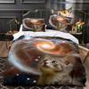 Comforter Bedding Sets For Double Size Galactic Cosmic 3d Cat Duvet Cover Bed Linen 2 Bedrooms For Boy Teen Girls Pink Purple