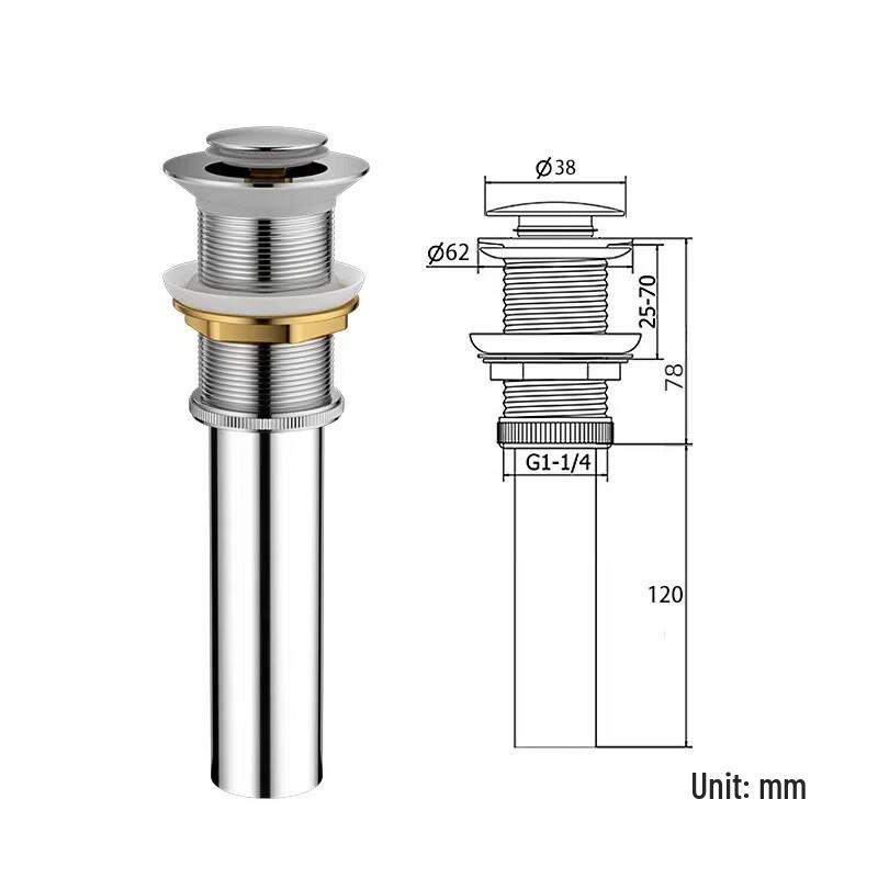 This universal pop-up drain stopper is designed for single-basin use, crafted from durable brass with a sleek chrome finish. Its easy-to-use pop-up mechanism ensures efficient draining and sealing for your bathroom or kitchen sink.