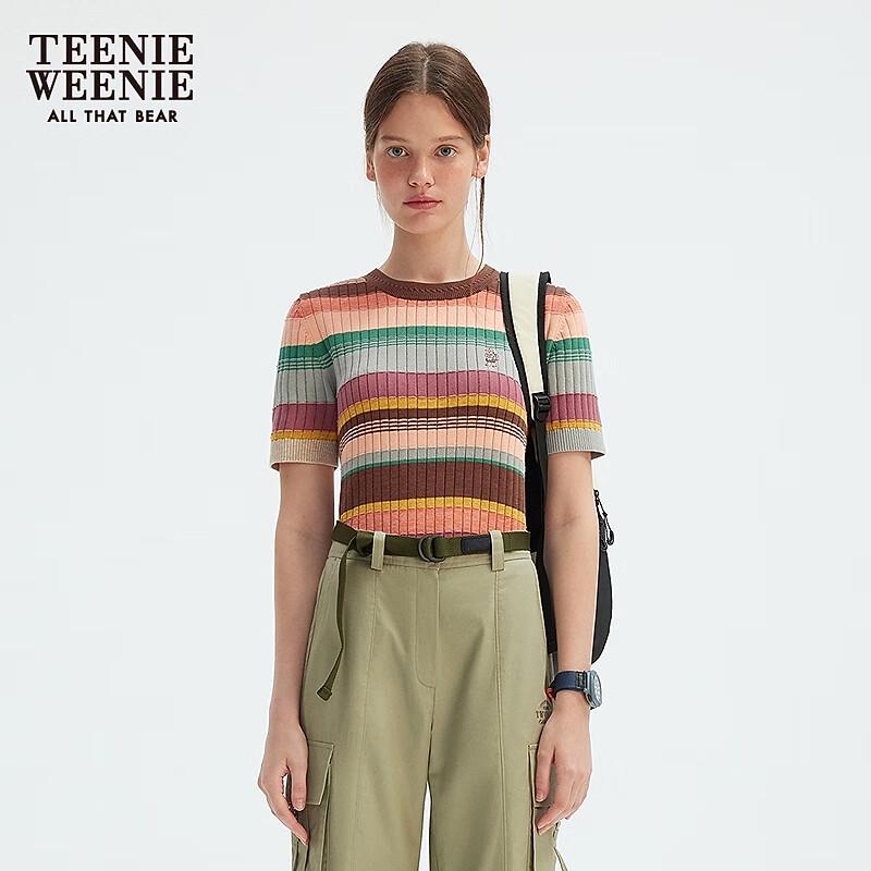 Teenie Weenie Women's Striped Short Sleeve Knit Sweater